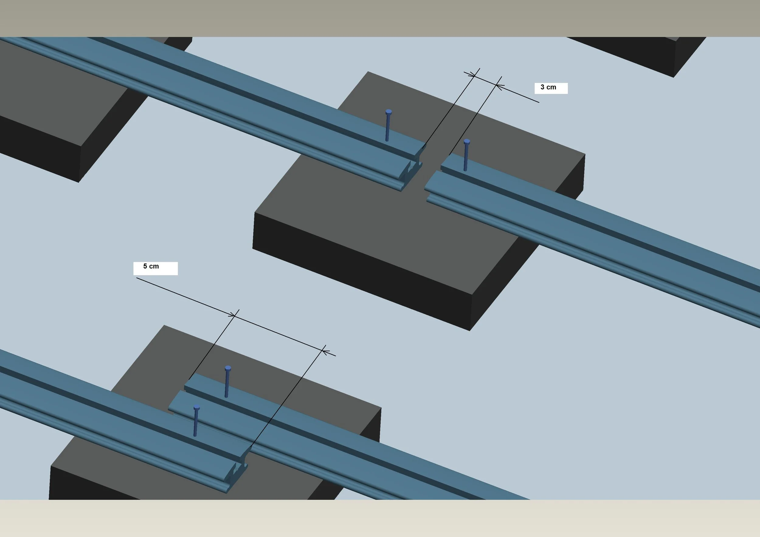 Primele cleme ce se fixează cu holşuruburi pentru ca structura să nu alunece. Se introduce pe şina de montaj primul profil WPC, păstrându-se un rost de 3 cm faţă de perete (vezi img.4). Se introduc următoarele cleme care se recomandă să nu mai fie fixate, permiţând astfel dilatarea profilelor în diferite regimuri termice cât şi o eventuală demontare. Urmeaza urmatorul profil fixat din nou cu cleme …s.a.m.d. Distanta dintre capetele scandurilor este de 0,5cm.